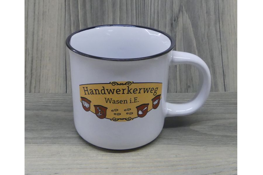 Mugbecher Keramik weiss 26 cl mit Handwerkerweg Logo