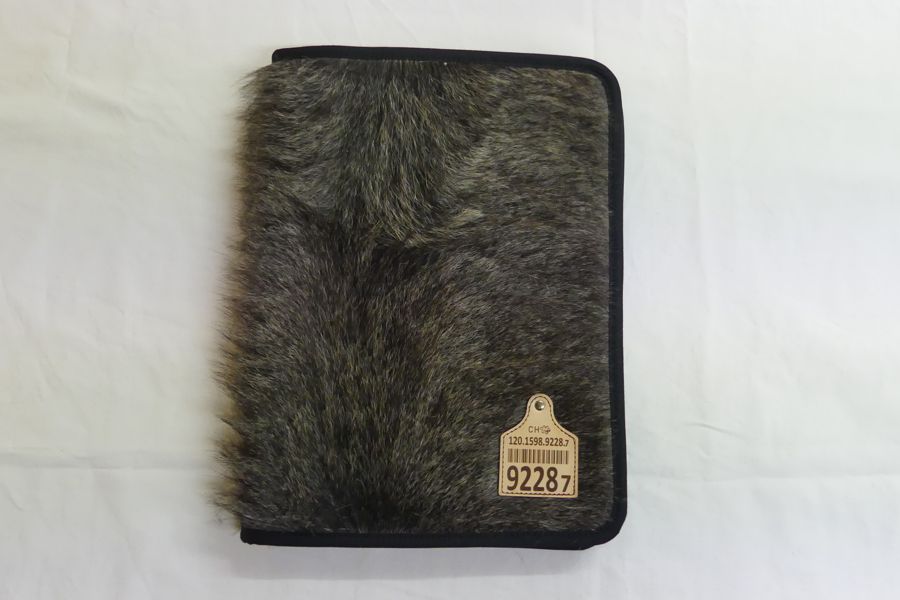 Schreibmappe Fell Piemonteser dunkel mit Reissverschluss