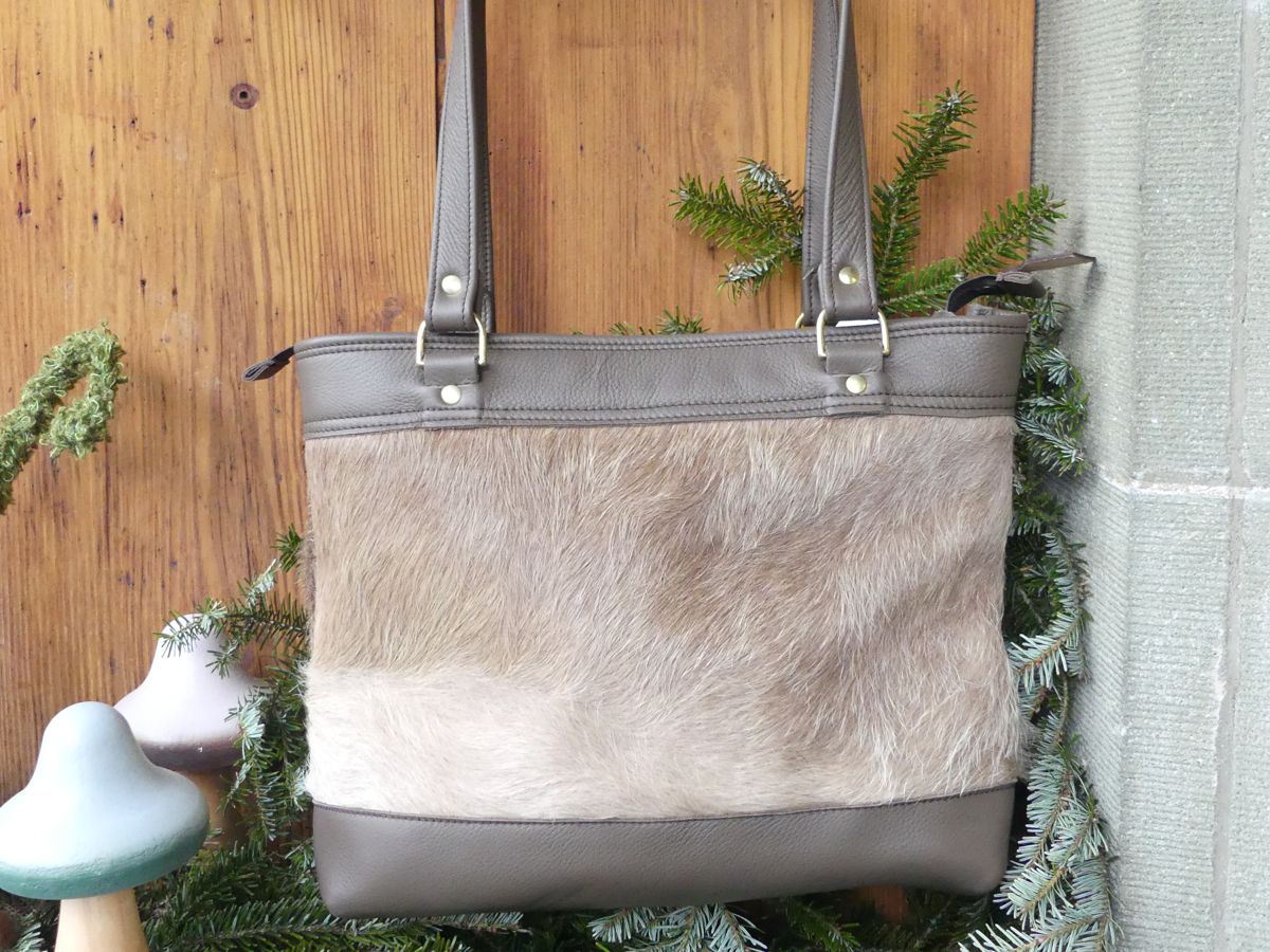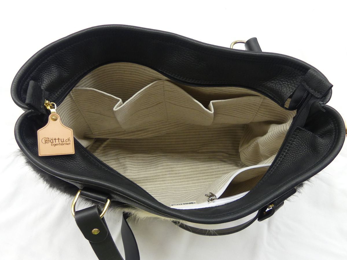 Die Edle, geräumige Tasche aus schweizer Kuhfell. Zu jeder Tasche können wir Ihnen die Geschichte der Kuh, des Rindes oder des Stiers erzählen.