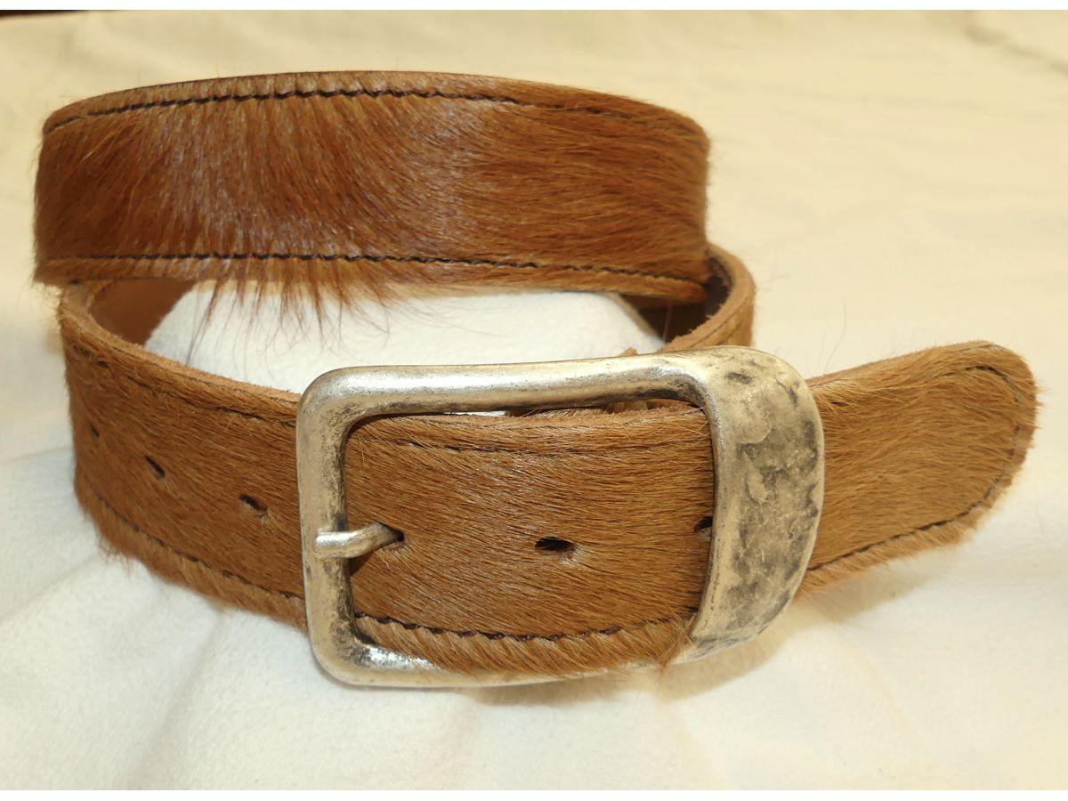 Hosengürtel mit Fell und Rindleder hellbraun; Doppelte Schnalle , eingenietet