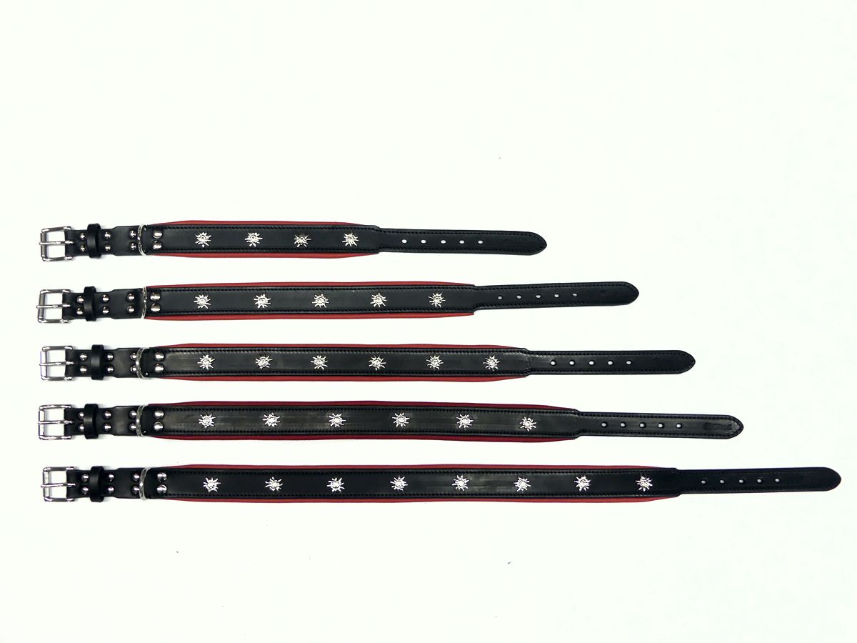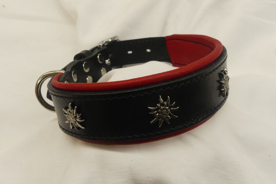 Hundehalsband Schwarz-Rot unterlegt mit Edelweiss 3cm