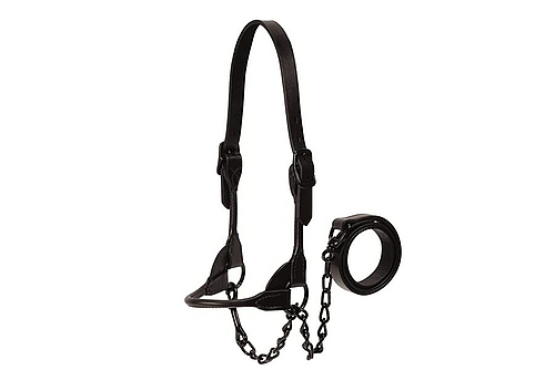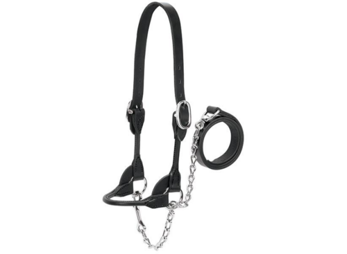Lederhalfter mit Schwarzer Kette und Fuhrleine