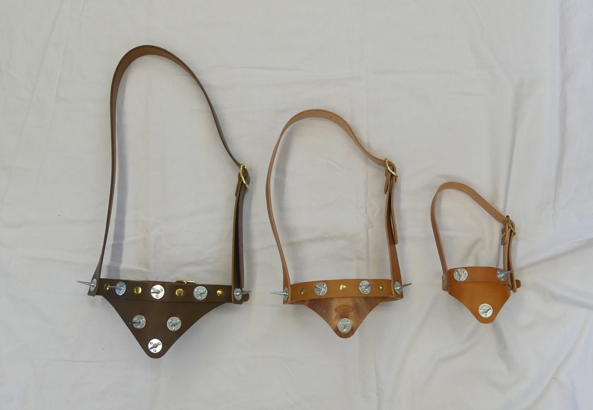 Saugschutz aus Leder mit aufgenieteten Nägeln