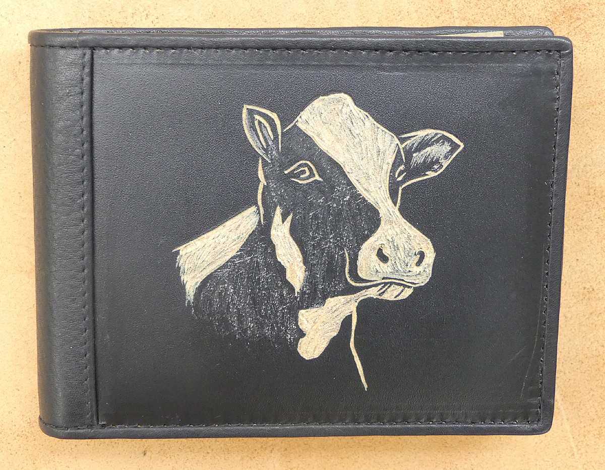 Rindleder Portemonnaie schwarz Vorderseite Handschnitzerei in unserer Werkstatt.