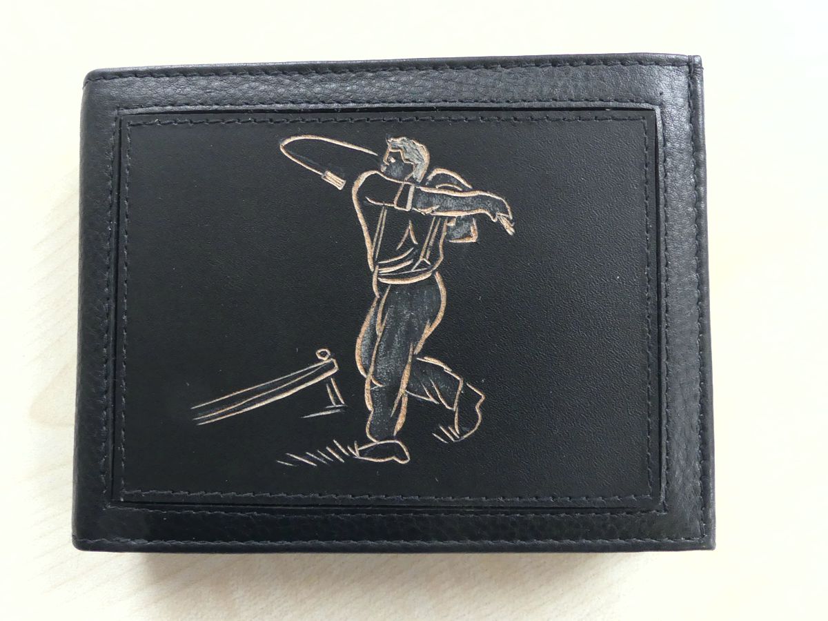 Rindleder Portemonnaie schwarz Vorderseite Handschnitzerei in unserer Werkstatt.