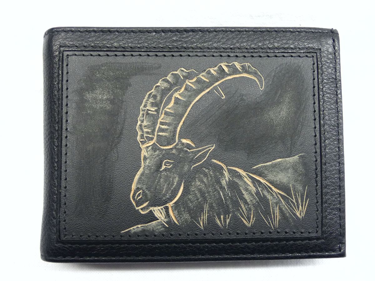 Rindleder Portemonnaie schwarz Vorderseite Handschnitzerei in unserer Werkstatt.