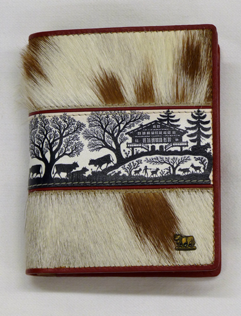 Rindleder Portemonnaie hellbraun mit Fell braun-weiss und Scherenschnitt