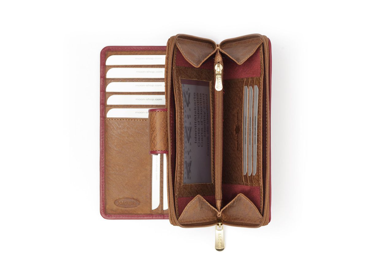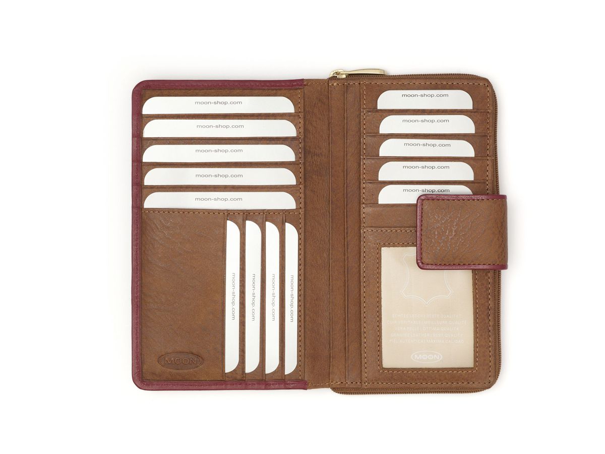 Rindleder Portemonnaie Fell mit Messingkuh Münzfach Reissverschluss mit 2 Kartenfächern, 2 Notenfächer, 17 Kartenfächer, 2 Ausweisfächer
