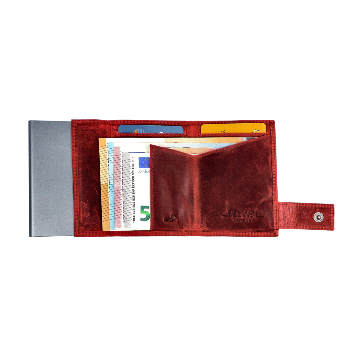Kartenetui mit Münzfach Druckknopf Geldbörse aus Leder
