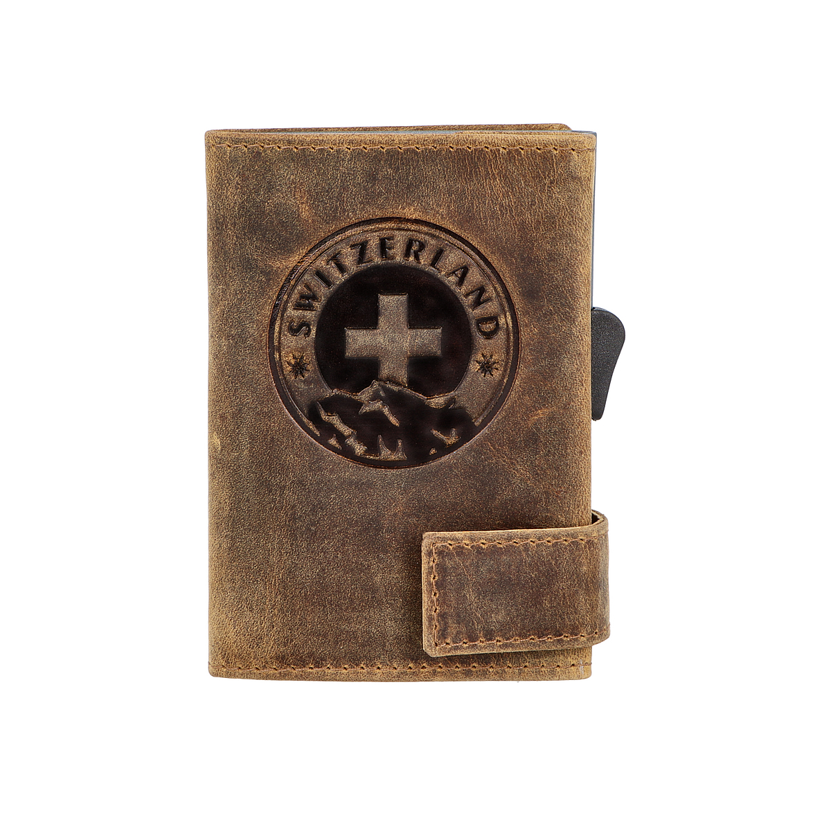 Kartenetui mit Münzfach Druckknopf Geldbörse geprägt aus Leder
