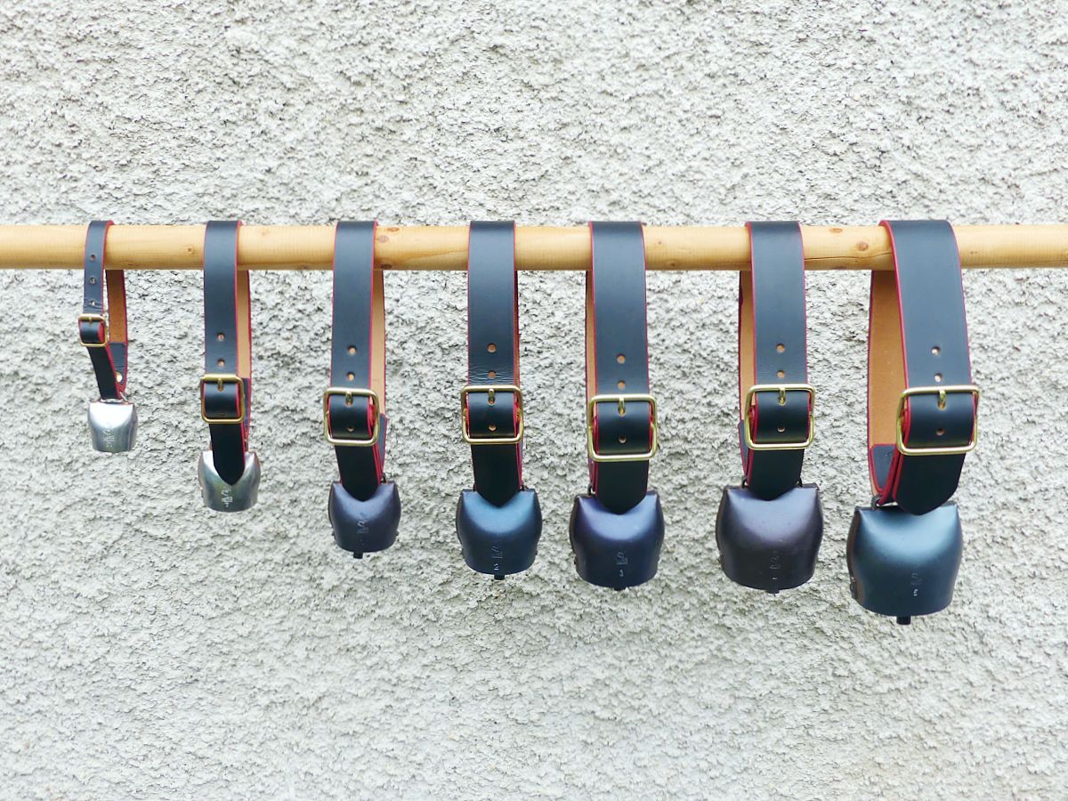 Glocke Grösse CHA 5: Maulöffnung 77 mm, Riemen 5 cm breit Schwarz mit Roter Kante, Schnalle Oro eingenietet